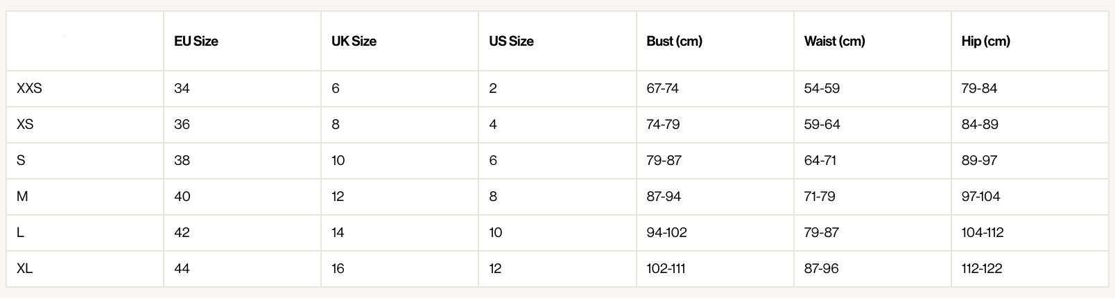Skynwear is made from four-way stretch fabric; if in doubt, size down rather than up. Our pieces are made to stretch.